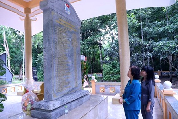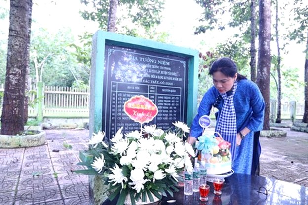 Bà Hà Thị Nga, Ủy viên TƯ Đảng, Chủ tịch Hội LHPN Việt Nam, dâng hương tại Khu chứng tích tội ác quân Khmer Đỏ, xã Tân Lập (Tân Biên, Tây Ninh).
