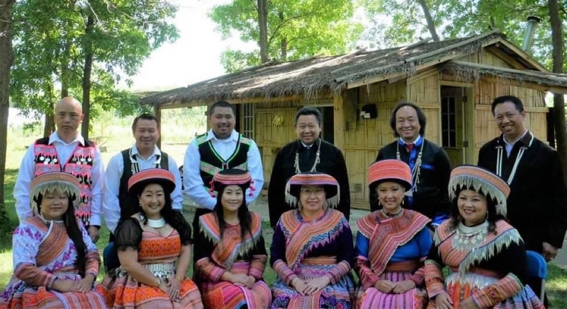Khách hàng mặc trang phục truyền thống người Mông chụp ảnh tại Hội Tết quốc tế của người Mông tại Merced, Califonia năm 2022
