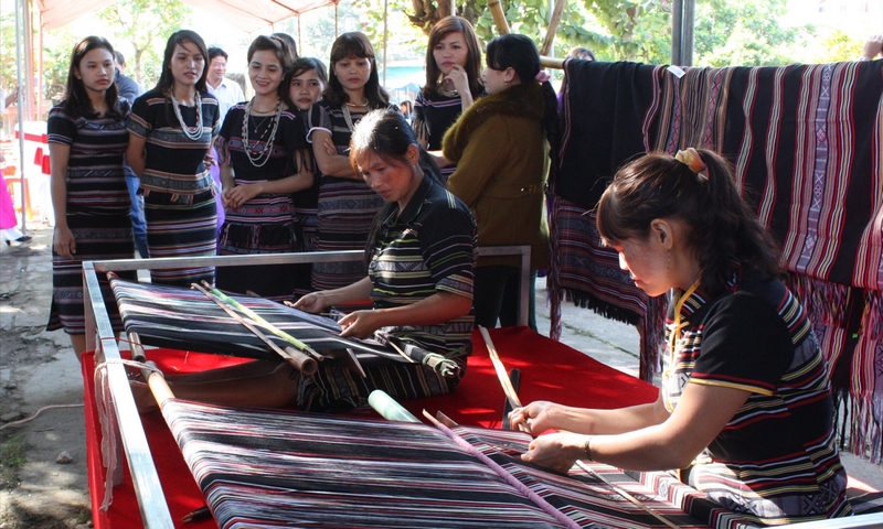 Nhiều phụ nữ dệt thổ cẩm Làng Teng có việc làm thường xuyên và thu nhập ổn định nhờ liên kết với HTX Nông nghiệp Cao Muôn Ba Tơ tiêu thụ sản phẩm