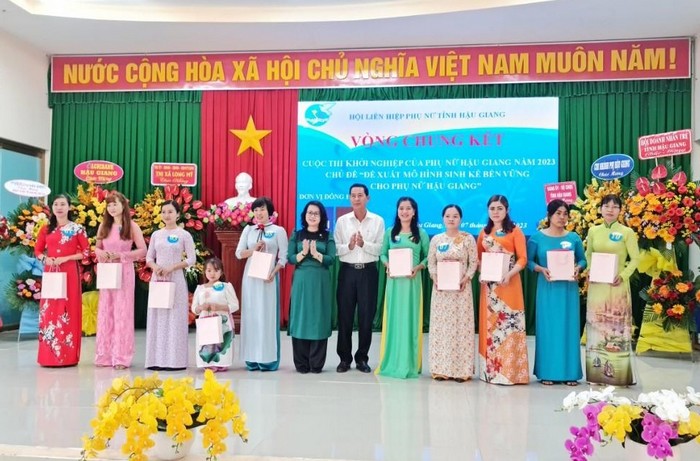 Cũng tại buổi tọa đàm, Hội LHPN tỉnh trao vốn hỗ trợ hiện thực hóa 10 ý tưởng tiêu biểu của phụ nữ, mỗi ý tưởng 5 triệu đồng; đồng thời tổ chức tổng kết trao giải Cuộc thi khởi nghiệp của Phụ nữ Hậu Giang năm 2023. Qua đó, đã trao 1 giải nhất, 1 giải nhì và 3 giải ba đối với 5 ý tưởng xuất sắc nhất và 5 giải khuyến khích. Dự án mô hình nông nghiệp (du lịch xanh) đạt chuẩn OCOP của bà Trần Thị Tuyết Nhung, ở ấp Xẻo Cao A, xã Thạnh Xuân, huyện Châu Thành A, đạt giải nhất.