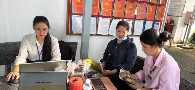 Các chị em phụ nữ làm Căn cước công dân tại UBND xã Bình Châu