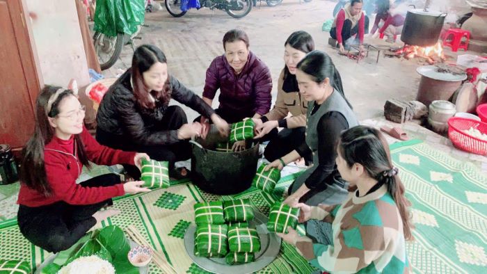 Cán bộ hội viên phụ nữ phường Thượng Hồng gói bánh chưng tặng phụ nữ và trẻ em có hoàn cảnh khó khăn