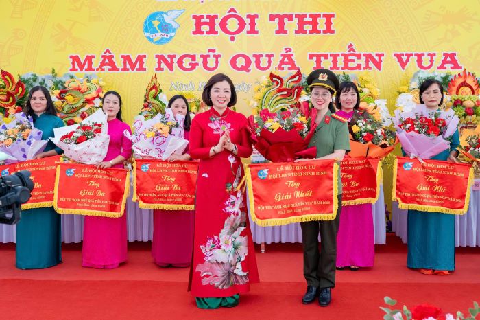 Các đội tham gia phần thi bày mâm ngũ quả Phát biểu khai mạc hội thi, Tỉnh ủy viên, Phó Chủ tịch Ủy ban MTTQ Việt Nam tỉnh, Chủ tịch Hội LHPN tỉnh Đào Thị Hòa nhấn mạnh: Hội thi “Mâm ngũ quả tiến Vua” không chỉ là hoạt động văn hóa đặc sắc trong khuôn khổ Lễ hội Hoa Lư mà còn là dịp để cán bộ, hội viên phụ nữ thể hiện sự khéo léo, sáng tạo, góp phần gìn giữ và phát huy những giá trị văn hóa truyền thống tốt đẹp của dân tộc. Đồng thời, thông qua hội thi tiếp tục giáo dục truyền thống lịch sử, bồi đắp lòng tự hào dân tộc, khơi dậy tinh thần đoàn kết, trách nhiệm của mỗi cán bộ, hội viên phụ nữ trong xây dựng và bảo vệ quê hương, đất nước.