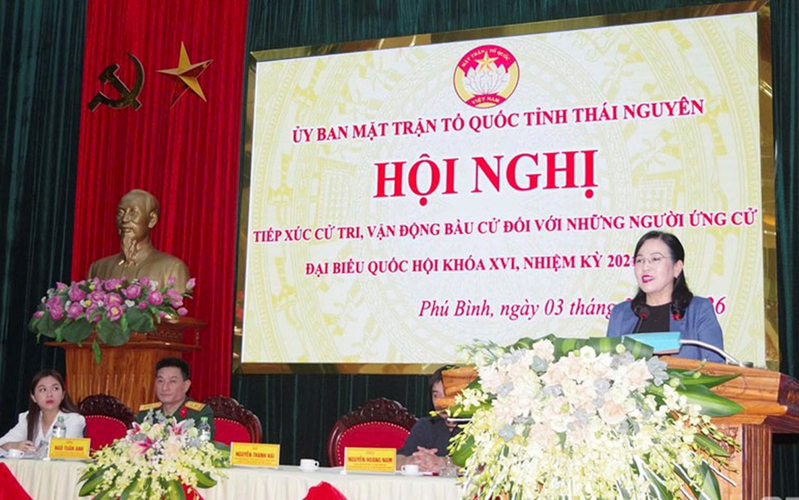 Bà Nguyễn Thanh Hải, Ủy viên Trung ương Đảng, Chủ nhiệm Ủy ban Khoa học công nghệ và Môi trường của Quốc hội, phát biểu tại buổi tiếp xúc cử tri ở xã Phú Bình, tháng 3/2026. Ảnh: Quang Nhất Theo kết quả bầu cử được công bố, tỉnh Thái Nguyên có 10 người trúng cử đại biểu Quốc hội khóa XVI, trong đó có 4 nữ đại biểu, chiếm 40%, gồm: Bà Nguyễn Thanh Hải, Ủy viên Ban Chấp hành Trung ương Đảng, Ủy viên Ban Thường vụ Đảng uỷ Quốc hội, Ủy viên Ủy ban Thường vụ Quốc hội, Chủ nhiệm Ủy ban Khoa học, Công nghệ và Môi trường của Quốc hội; Bà Phạm Thị Thu Thuỷ, Ủy viên Ban Chấp hành Đảng bộ tỉnh, Ủy viên Ban Chấp hành Đảng bộ các cơ quan Đảng tỉnh, Ủy viên Thường trực HĐND tỉnh, Trưởng Ban hoạt động chuyên trách Ban Văn hoá - Xã hội, HĐND tỉnh Thái Nguyên;