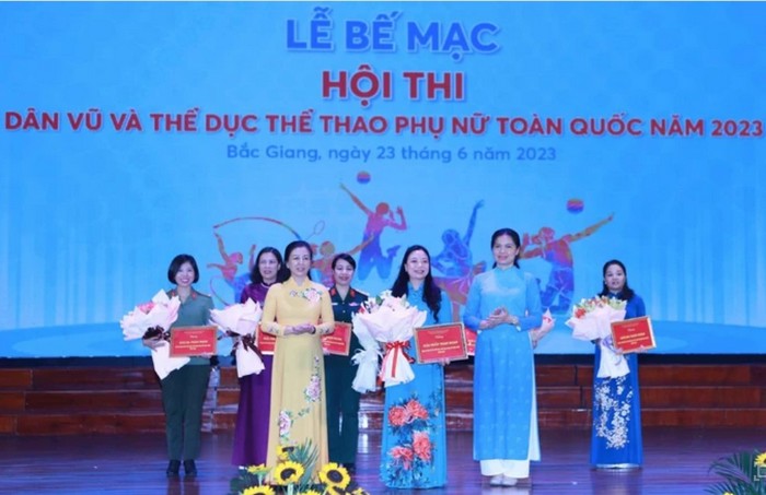 Tại chương trình, lãnh đạo Hội LHPN Việt Nam cũng trao 8 Bằng khen cho các tập thể, cá nhân có thành tích xuất sắc tham gia Hội thi Dân vũ và thể dục thể thao phụ nữ toàn quốc năm 2023.