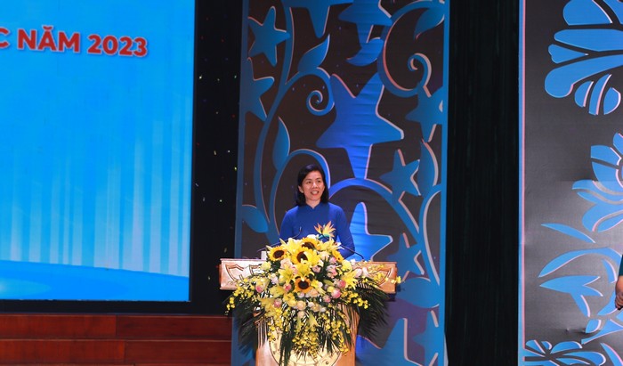 Phó Chủ tịch Hội LHPN Việt Nam Nguyễn Thị Minh Hương nhiệt liệt biểu dương và chúc mừng thành tích của các đoàn tham gia Hội thi