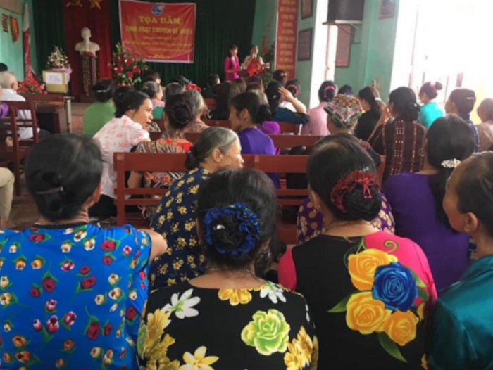 Một buổi sinh hoạt chuyên đề của chị em chi hội phụ nữ thôn Trằm Với mục tiêu đoàn kết để xây dựng phong trào, nhiệm kỳ qua, chi hội phụ nữ thôn Trằm luôn chú trọng việc tập hợp, thu hút hội viên, phụ nữ tham gia các phong trào và hoạt động Hội; coi việc tập hợp, quy tụ và thu hút hội viên phụ nữ là nhiệm vụ then chốt để xây dựng tổ chức Hội vững mạnh toàn diện. Chi hội luôn thường xuyên quan tâm tới điều kiện sống của chị em trên địa bàn để tìm hiểu tâm tư, nguyện vọng, vận động chị em tham gia vào tổ chức Hội; đồng thời triển khai nhiều hoạt động hỗ trợ, tạo điều kiện cho hội viên, phụ nữ về vốn phát triển kinh tế, xây dựng cuộc sống gia đình, nâng cao chất lượng đời sống cả về vật chất lẫn tinh thần... Đến nay, tỷ lệ tập hợp hội viên của chi hội đạt 78%.