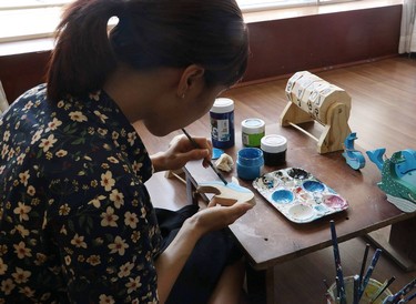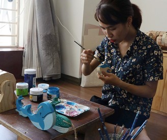 Từ những miếng gỗ thừa qua bàn tay của chị nó trở thành những đồ vật xinh xắn và mang lại thu nhập.