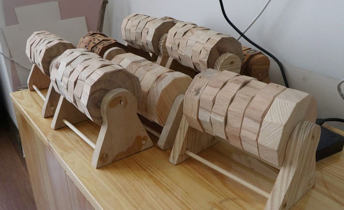 Sau khi chuẩn bị đầy đủ đồ dung, dụng cụ, hàng ngày chị Hảo đi đến các hộ làm mộc xung quanh gia đình mình để xin những mẫu gỗ thừa về. Vốn là dân kiến trúc nên chị dễ dàng tư duy ra hình thù các đồ vật rồi sáng tạo sao cho đẹp mắt.