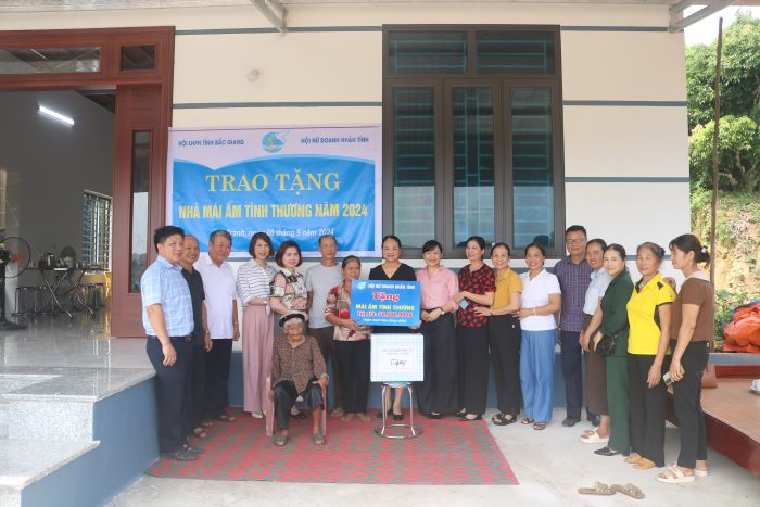 Đây là hoạt động nhằm hưởng ứng cuộc vận động của Ban chỉ đạo vận động, hỗ trợ xây dựng xóa nhà tạm, nhà dột nát cho hộ nghèo, hộ cận nghèo và hỗ trợ gia đình người có công gặp khó khăn về nhà ở, nhà xuống cấp cần được sửa chữa, xây mới trên địa bàn tỉnh Bắc Giang với chủ đề “Triệu tấm lòng yêu thương, xây nghìn căn nhà Đại đoàn kết”, đồng thời tiếp tục phát huy truyền thống tương thân tương ái, với tinh thần lá lành đùm lá rách. Ngôi nhà được trao cho chị Nguyễn Thị Hương, sinh năm 1971, hội viên phụ nữ thôn Ry, xã Vô Tranh, huyện Lục Nam. Gia đình chị Nguyễn Thị Hương thuộc hộ nghèo, chồng chị thường xuyên đau ốm, hai vợ chồng chị có 02 người con đều bị thiểu năng trí tuệ, sức khỏe và khả năng lao động đều hạn chế. Cả gia đình chị sinh sống trong ngôi nhà cấp 4 dột nát, xuống cấp trầm trọng, có nguy cơ sụp đổ khi mùa mưa, bão. Trong quá trình xây dựng, gia đình chị Hương đã được Hội phụ nữ xã, Chi hội phụ nữ cùng anh em họ hàng và nhân dân hỗ trợ 30 ngày công lao động. Sau hơn 03 tháng thi công, ngôi nhà mới đã hoàn thành với tổng trị giá 250 triệu đồng. Trong đó, Hội Nữ doanh nhân tỉnh đã hỗ trợ 50 triệu đồng.