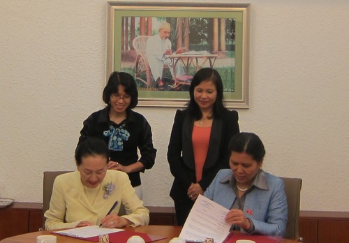 Cũng trong buổi làm việc, Chủ tịch Thanh Hoà và bà Han Mi Young đã ký kết Văn bản ghi nhớ bổ sung về việc hợp tác triển khai các chương trình giáo dục do WWIEA và Tổ chức Sở hữu trí tuệ thế giới (WIPO) tổ chức phù hợp với Văn bản ghi nhớ đã được ký kết nhằm thúc đẩy sự sáng tạo và sử dụng hiệu quả sở hữu trí tuệ của phụ nữ, thanh niên và người khuyết tật vì lợi ích kinh tế của họ và góp phần cải thiện chất lượng sống.