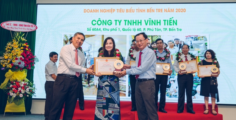 Bà Đặng Thị Trúc Lan Chi nhận giải thưởng doanh nghiệp tiêu biểu Tỉnh Bến Tre năm 2020