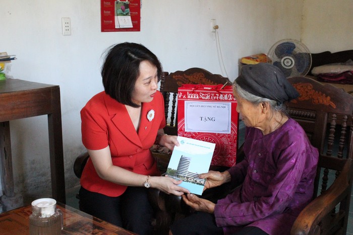 Phó Chủ tịch Hội LHPN Phạm Thị Thanh Hương thăm hỏi, tặng quà bà Nguyễn Thị Tưởng - vợ liệt sĩ ở xã Thanh Thùy, huyện Thanh Oai