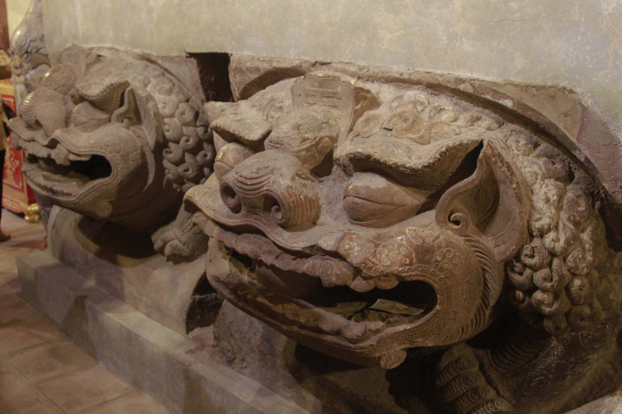 Đôi sư tử đá tại Khu di tích Đền thờ Nguyên phi Ỷ Lan được công nhận là Bảo vật Quốc gia