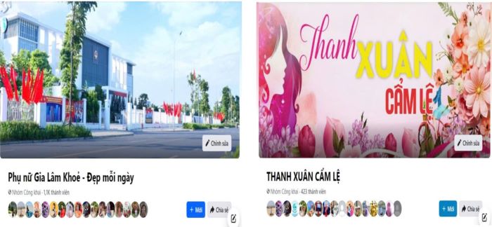 Giao diện của nhóm “Phụ nữ Gia lâm khỏe đẹp mỗi ngày” và nhóm “Thanh Xuân Cẩm Lệ”