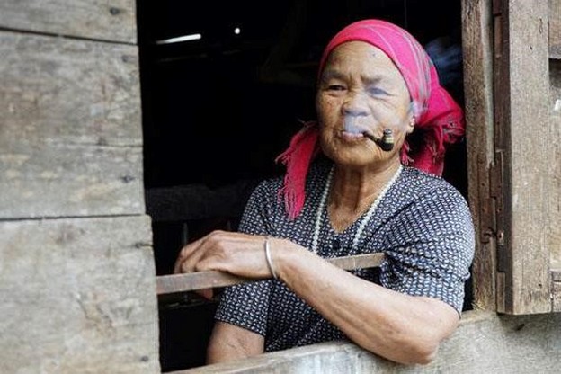 Người phụ nữ Ê đê chụp ảnh từ cửa sổ của quán