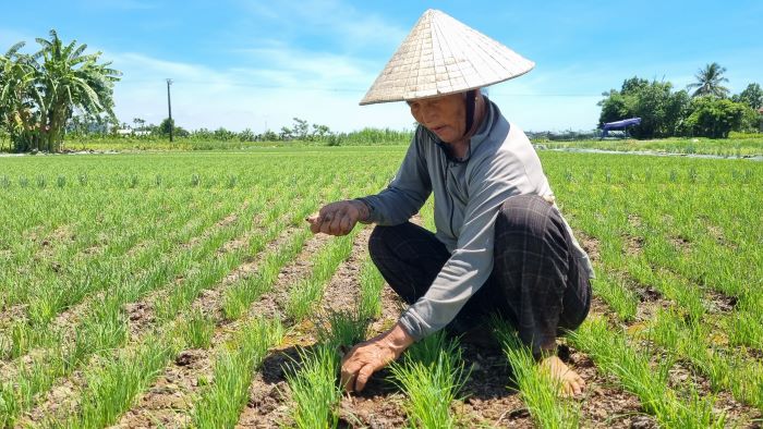 Gia đình bà Võ Thị Giao (62 tuổi), thôn 1, xã Đức Chánh, huyện Mộ Đức là một trong những hộ có diện tích trồng hẹ nhiều và cho hiệu quả kinh tế cao với diện tích gần 1ha. Bà chia ra làm nhiều liếp để thu hoạch xoay vòng.