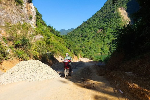 Ông Tấn cho biết, mặc dù chỉ cách trung tâm huyện Đà Bắc hơn 80km nhưng phải mất gần 3 giờ đồng hồ qua những đoạn đường đèo dốc, quanh co và cả những con đường dân sinh nhỏ hẹp một bên là vách núi, một bên là sông Đà, men theo Tỉnh lộ 433 mới đến được trung tâm xã. Dù đường sá đã được đầu tư nâng cấp, sửa chữa nhưng nhiều đoạn vẫn thường xuyên sạt lở, cảnh báo nguy hiểm mỗi khi mùa mưa lũ.