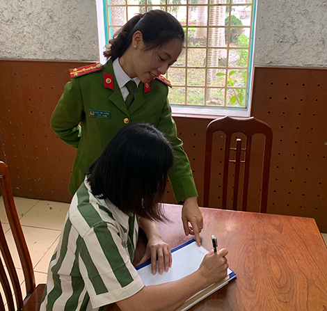 Hoàn cảnh của H. bên ngoài đã khổ cực, thụ án tại Trại tạm giam Công an tỉnh Quảng Ninh không có người thân thăm nuôi, những lúc ấy, người thường xuyên gần gũi nhất chính là nữ quản giáo, đại úy Đặng Thu Hường của. Chị Hường kể, trong những lần gặp gỡ phạm nhân, chị chủ động tìm hiểu suy nghĩ để biết H. đang trăn trở điều gì, từ đó có cách tiếp xúc, động viên, giáo dục phù hợp.
