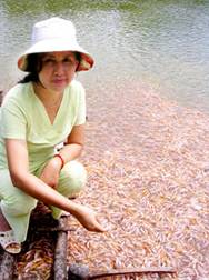 Chị nuôi cá điêu hồng thành công là nhờ kinh nghiệm chọn giống cá thả nuôi, nên hiếm khi gặp rủi ro. Sau 5 năm gắn bó với nghề nuôi cá điêu hồng ở cồn Tân Mỹ, chị Tư Hiền đã có 4 bè lớn và 8 bè nhỏ nuôi cá điêu hồng trên sông Tiền. Số cá thương phẩm mà chị bán hàng năm đạt từ 75 - 80 tấn, doanh thu trên 1,6 tỉ đồng. Riêng về cá giống, trung bình mỗi tháng chị bán ra 7 tấn, với giá 25.000 đồng/kg loại 60-70 con/kg. Hiện tại, chị còn lên kế hoạch sẽ đào 4 ao để nuôi cá điêu hồng bố mẹ cho cá đẻ, nhân giống cá tại cồn mà không phải đi mua cá bột về ươm như hiện nay.