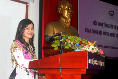 TS Trần Thu Hương( áo dài trắng) được nhận Giấy khen biểu dương thành tích của Hội Nữ trí thức năm 2014 về những kết quả đạt được trong nghiên cứu khoa học