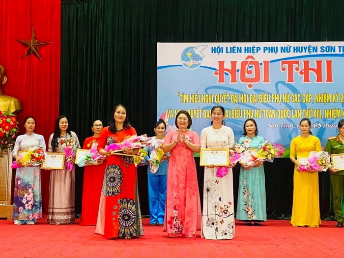 Ban Tổ chức trao giấy khen cho đội đạt giải cao Tham gia hội thi tìm hiểu Nghị quyết có 12 đơn vị gồm 11 Hội LHPN cấp xã và Hội Phụ nữ Công an huyện, với trên 70 thí sinh. Các đội đều trải qua 3 phần thi gồm: giới thiệu; thi kiến thức trả lời câu hỏi với nội dung tìm hiểu về Nghị quyết; thi năng khiếu thông qua các tiểu phẩm, múa hát, hoạt cảnh múa, tiết mục dân vũ ca ngợi Đảng, Bác Hồ, quê hương đất nước, về công tác Hội…