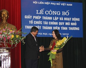 Sáng 25/8, tại cơ quan TW Hội LHPN Việt Nam, Thống đốc Ngân hàng Nhà nước Việt Nam Nguyễn Văn Giàu đã trao giấy phép thành lập và hoạt động cho tổ chức tài chính quy mô nhỏ trách nhiệm hữu hạn một thành viên Tình Thương (TYM) trực thuộc Hội LHPN Việt Nam. Tham dự có Chủ tịch Hội LHPN Việt Nam Nguyễn Thị Thanh Hòa, các Phó Chủ tịch Hội LHPN Việt Nam, Giám đốc Ngân hàng Nhà nước chi nhánh Hà Nội Nguyễn Thị Mai Sương cùng đông đảo cán bộ, lãnh đạo các ban, đơn vị TW Hội LHPN Việt Nam, đại biểu các chi nhánh của Quỹ TYM.
