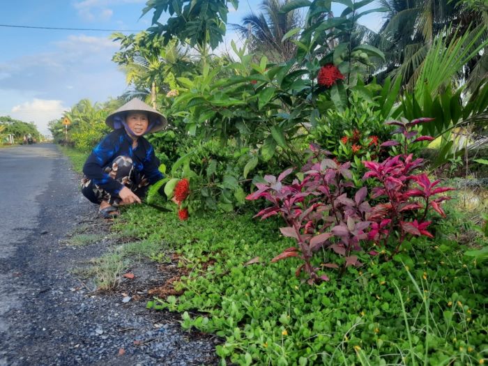 Chị luôn là người gương mẫu đi đầu trong các phong trào của địa phương, giữ gìn đoàn kết xóm làng, tham gia cùng chi hội phụ nữ ấp vận động hội viên phụ nữ đăng ký phong trào thi đua và thực hiện CVĐ “Xây dựng gia đình 5 không, 5 có và 3 sạch”: thực hiện đoạn đường “Trồng cau kiểng”, “Đoạn đường hoa” dài 1.800m; cắt tỉa, làm cỏ, dọn dẹp vệ sinh,... vận động các hộ gia đình xây dựng nhà tắm, hố xí hợp vệ sinh; không vứt rác, động vật chết xuống sông, kênh rạch, ngoài đường; không ảnh hưởng môi trường xung quanh, cải tạo cảnh quan môi trường, làm hàng rào, cột cờ và trồng hoa trước nhà tạo vẻ mỹ quang xanh, sạch, đẹp cảnh quang sinh sống môi trường xung quanh.