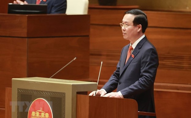 Chủ tịch nước Võ Văn Thưởng phát biểu nhậm chức. (Ảnh: TTXVN)