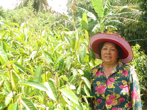 Để cây phát triển tốt, năng suất chất lượng cao bà thường xuyên theo dõi báo chí và học hỏi kinh nghiệm từ những nông dân thành đạt. Nhờ vậy mà vườn sầu riêng nhà bà lúc nào cũng xanh mướt, trái sai, trái to, chất lượng thơm ngon, thương lái sẵn sàng mua với giá cao.