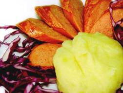Xúc xích chiên dùng kèm khoai tây nghiền