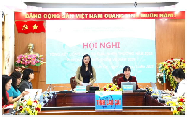 Chiều 26/11, tại Lào Cai, Cụm thi đua Hội LHPN Việt Nam các tỉnh miền núi biên giới phía Bắc tổ chức Hội nghị tổng kết công tác thi đua, khen thưởng năm 2025 và triển khai phương hướng, nhiệm vụ năm 2026. -