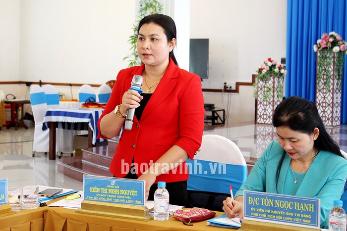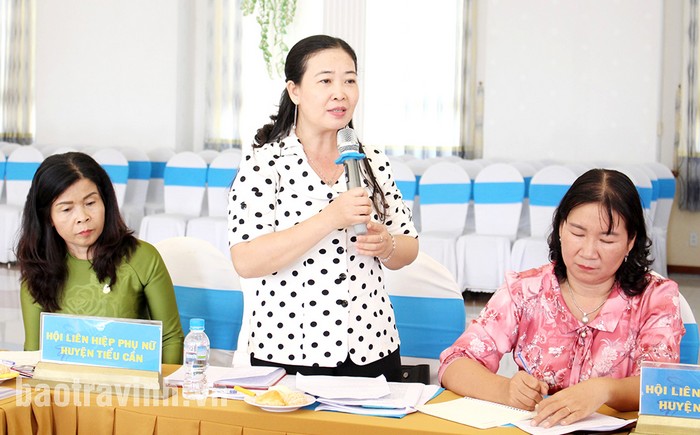 Đồng chí Lê Thị Kim Loan, Chủ tịch Hội LHPN huyện Tiểu Cần phát biểu tại buổi làm việc