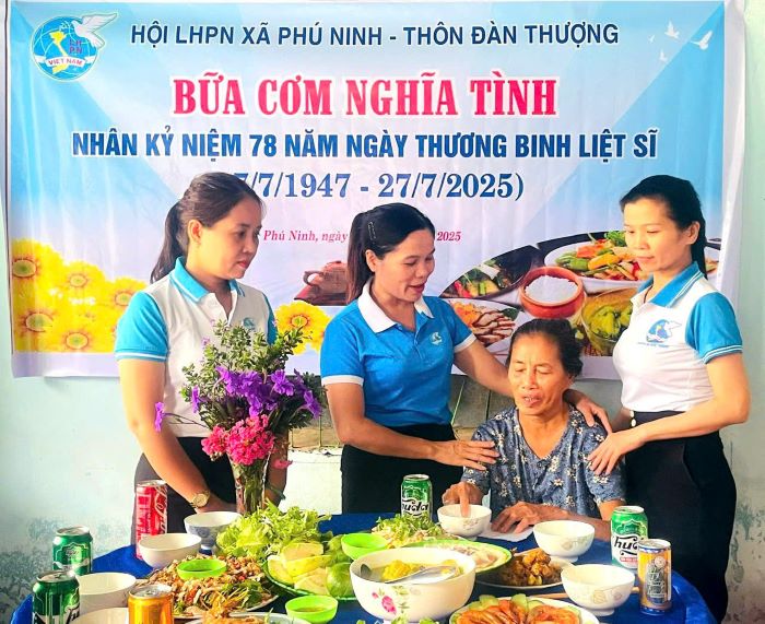 Tại xã Phú Ninh, chương trình “Bữa cơm nghĩa tình” được tổ chức tại nhà bà Phan Thị Thúy Hồng - bệnh binh hạng 3/2, trú tại thôn Đàn Thượng. Cũng với hình thức đó, tại xã Đại Lộc, Hội LHPN xã đã tổ chức “Bữa cơm tri ân” tại nhà Mẹ Việt Nam Anh hùng Thái Thị Cơ (thôn Hòa Bắc). Các chị em phụ nữ trong chi hội đã cùng nhau quét dọn nhà cửa, làm đẹp bàn thờ, chuẩn bị bữa cơm giản dị nhưng đầm ấm, chan chứa tình thân. Ngoài ra, nhiều xã, phường còn tổ chức ra quân chỉnh trang, dọn vệ sinh tại các nghĩa trang liệt sĩ, dâng hương tưởng niệm, tổ chức sinh hoạt chuyên đề, chiếu phim “10 cô gái Ngã ba Đồng Lộc”; đồng thời thăm hỏi, khám bệnh và trao quà cho Mẹ Việt Nam Anh hùng và các gia đình chính sách trên địa bàn.
