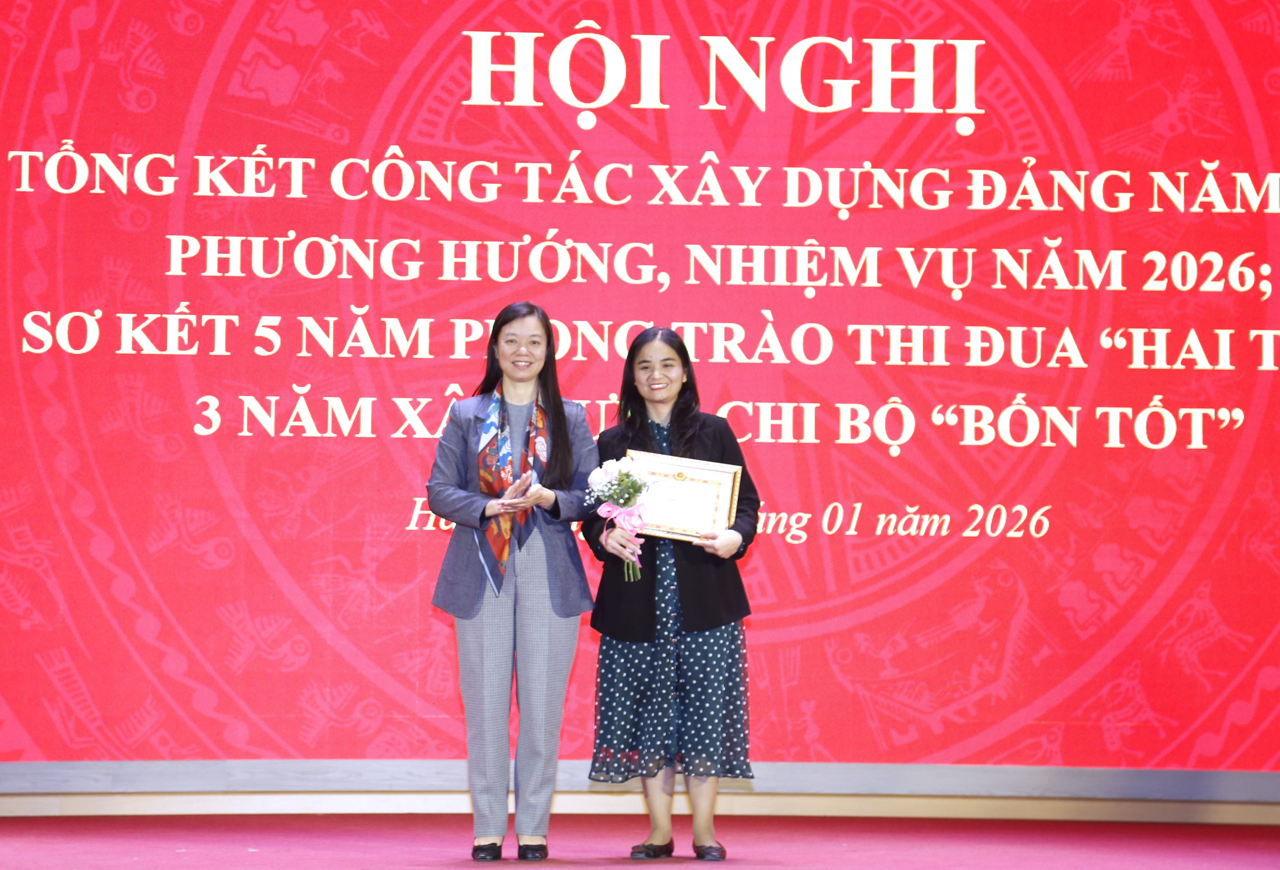 Hội nghị cũng trao Giấy khen cho 2 đảng viên "Hoàn thành xuất sắc nhiệm vụ" 5 năm liền; trao Giấy khen cho 6 tập thể và 20 cá nhân đạt thành tích xuất sắc trong triển khai phong trào thi đua "Hai tốt", xây dựng chi bộ "Bốn tốt" giai đoạn 2021 - 2025.