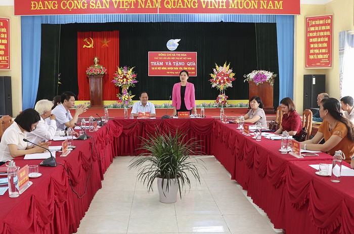 Cũng trong sáng 4/9, Chủ tịch Hội Hà Thị Nga đã đi thăm và làm việc tại xã Việt Hồng, huyện Trấn Yên. Tại đây, lãnh đạo xã Việt Hồng đã báo cáo về tình hình phát triển kinh tế - xã hội 8 tháng đầu năm, kết quả Đại hội Đảng bộ xã và công tác cán bộ nữ trên địa bàn.