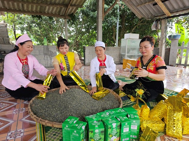 Chị Bình chia sẻ: "Ngoài sự quan tâm hỗ trợ của Hội LHPN xã, Tổ hợp tác còn được Hội LHPN huyện Yên Lập hỗ trợ đăng ký mã vạch, bao bì, nhãn mác, tập huấn về chăm sóc cây chè, nâng cao năng lực cho 3 thành viên Ban quản lý Tổ hợp tác".