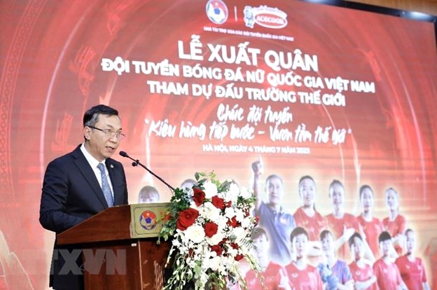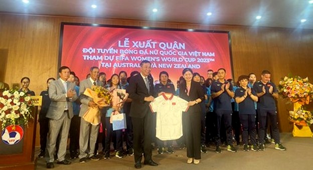 Sáng 4/7, Lễ xuất quân đội tuyển bóng đá nữ quốc gia Việt Nam tham dự World Cup nữ 2023 đã diễn ra tại trụ sở Liên đoàn bóng đá Việt Nam (VFF).