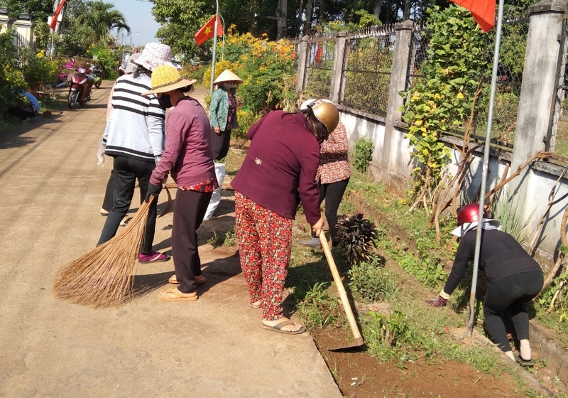 Các hội viên Hội LHPN xã Xuân Quế đang làm môi trường tại địa phương