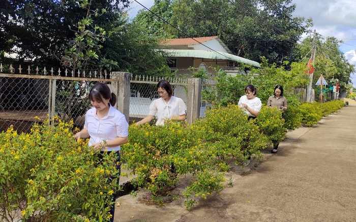 "Việc chăm sóc hoa, cây cảnh được Hội và chính quyền địa phương giao cho các hộ dân thực hiện. Người dân có trách nhiệm chăm sóc cho cây trước cổng nhà mình. Mỗi tháng một lần, Hội phát động hội viên tham gia cùng chính quyền đia phương ra quân làm công tác dân vận, chăm sóc nhổ cỏ, phát quang bụi rậm. Hội cũng phát động chị em hội viên và gia đình tích cực giữ gìn vệ sinh xung quanh nhà; cây cảnh thường xuyên được cắt tỉa, đảm bảo không ảnh hưởng đến an toàn giao thông, không gây hư hại đến công trình công cộng hay ảnh hưởng đến vệ sinh môi trường. Nhiều hộ đã thực hiện cải tạo vườn, chỉnh trang hàng rào gọn gàng, làm đẹp thêm khuôn viên ngôi nhà mình sinh sống và đường giao thông nông thôn", bà Liên cho biết.