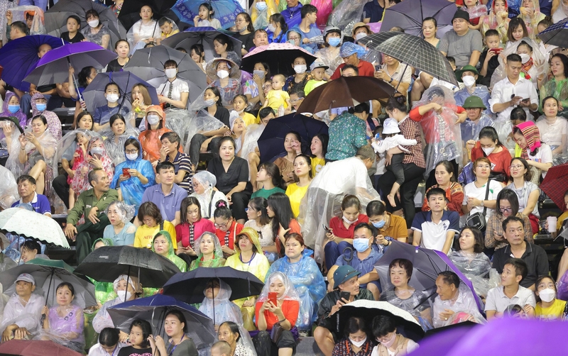 Người dân đội mưa tham gia chương trình.