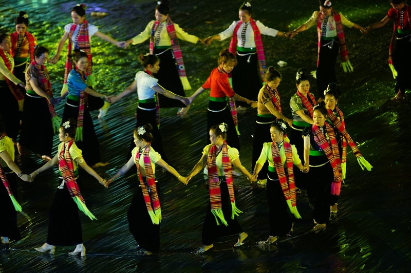 Trong quá trình diễn ra, thỉnh thoảng trời lại đổ mưa lớn, nhưng không hề làm giảm đi sự nhiệt huyết của hàng ngàn diễn viên, và khán giả vẫn kiên định không rời ghế ngồi để được thưởng thức trọn vẹn chương trình. Họ hân hoan, họ hạnh phúc khi thấy rõ ràng đấy chính là đời sống của mình, của tộc người mình đang hiển hiện rõ ràng, chân thực, sống động trên sân khấu.