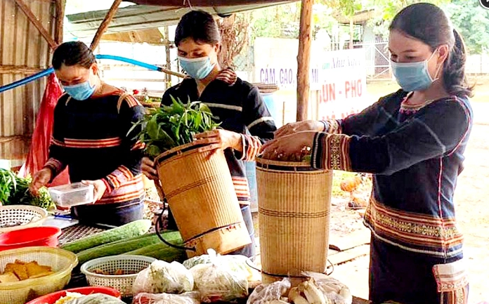 Còn tại xã Ia Mơ Nông (huyện Chư Păh), từ năm 2021, Hội LHPN không chỉ tặng gùi cho hội viên mà còn khuyến khích chị em dùng các loại lá cây trong vườn để gói hàng hóa thay cho bì ni lông khi đi chợ.
