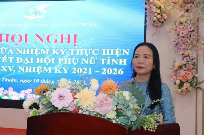 Một số kết quả nổi bật qua nửa kỳ thực hiện Nghị quyết như: 124/124 cơ sở Hội duy trì thường xuyên và nhân rộng 5 loại hình hoạt động; vận động, hỗ trợ giúp 746 hộ thoát nghèo, cận nghèo (đạt 124% chỉ tiêu TW giao); hỗ trợ nâng cao năng lực cho 472 phụ nữ có ý tưởng khởi nghiệp, kinh doanh, chủ cơ sở sản xuất, quản lý hợp tác xã (đạt 205% chỉ tiêu TW giao); thực hiện 584 công trình, phần việc xây dựng nông thôn mới, tổng trị giá 11,54 tỷ đồng và giúp gần 3.000 hộ đạt tiêu chí “Gia đình 5 không, 3 sạch”. Đặc biệt, thực hiện khâu đột phá của nhiệm kỳ về Tăng cường ứng dụng công nghệ thông tin trong hoạt động Hội và chủ đề năm 2024, Ban Thường vụ Hội LHPN tỉnh xây dựng và đề xuất thành công Đề án “Nâng cao năng lực ứng dụng công nghệ thông tin, chuyển đổi số trong hệ thống Hội LHPN tỉnh Bình Thuận giai đoạn 2023 - 2026”. Ngoài ra, công tác bình đẳng giới vì sự tiến bộ của phụ nữ được quan tâm, các cấp Hội đã phát hiện và phối hợp hỗ trợ 98 trường hợp phụ nữ, trẻ em là nạn nhân của bạo lực gia đình, bị xâm hại, bị bỏ rơi được tiếp cận các dịch vụ trợ giúp xã hội,…