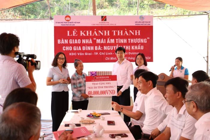 Hội LHPN thành phố Chí Linh phối hợp cùng Agribank chi nhánh Hải Dương II đã trao tặng nhà “Mái ấm tình thương” cho bà Nguyễn Thị Khẩu, một hội viên phụ nữ đơn thân có hoàn cảnh khó khăn tại phường Chí Minh với tổng số tiền hỗ trợ 70 triệu đồng.
