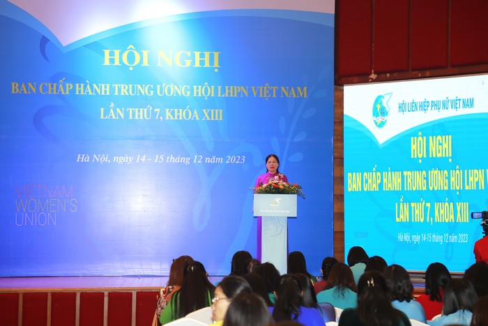 Với sự nhất trí cao, các đại biểu đã biểu quyết thông qua Nghị quyết Hội nghị Ban Chấp hành TW Hội LHPN Việt Nam lần thứ 7, khoá XIII: Nhất trí thông qua báo cáo Công tác Hội và phong trào phụ nữ năm 2023 và các báo cáo chuyên đề; thông qua kế hoạch công tác Hội năm 2024 với chủ đề “Tăng cường ứng dụng Công nghệ thông tin trong hoạt động Hội”; Tiếp thu các ý kiến đóng góp, giao Thường trực Đoàn Chủ tịch tiếp thu hoàn thiện các văn bản ban hành sau Hội nghị.