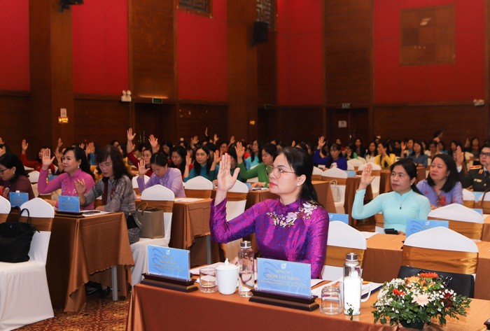 Các đại biểu đã biểu quyết thông qua Nghị quyết Hội nghị Ban Chấp hành TW Hội LHPN Việt Nam lần thứ 7, khoá XIII