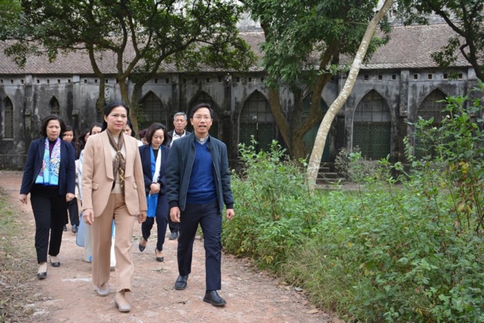 Chủ tịch Hội LHPN Việt Nam Hà Thị Nga tham quan nhà thờ giáo xứ Hoàng Nguyên