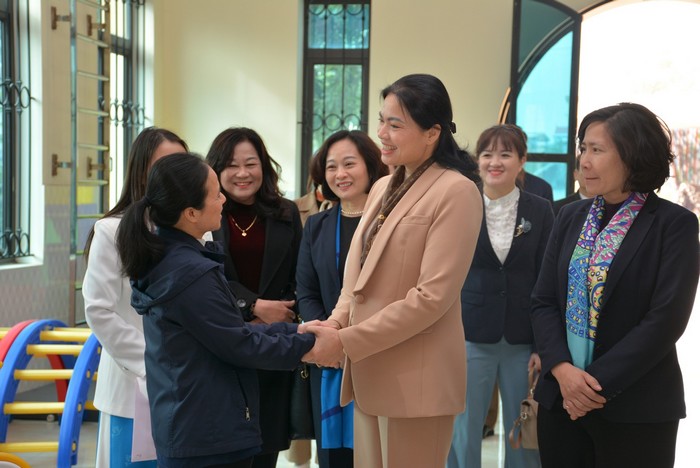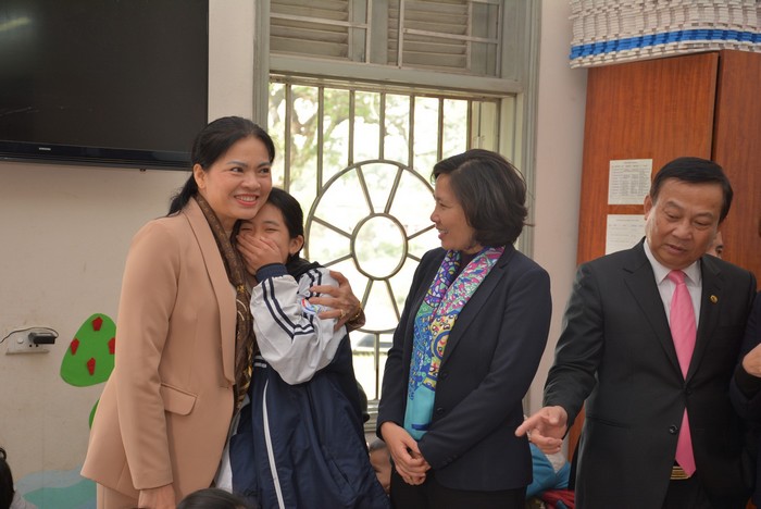 Trong chuyến đi, Chủ tịch Hội LHPN Việt Nam Hà Thị Nga và Đoàn công tác còn đến thăm và tặng quà Trung tâm khuyết tật Hoàng Nguyên, hiện do 6 xơ phụ trách dạy học cho 30 trẻ mắc chứng tự kỷ, trong đó có 8 bé gái.