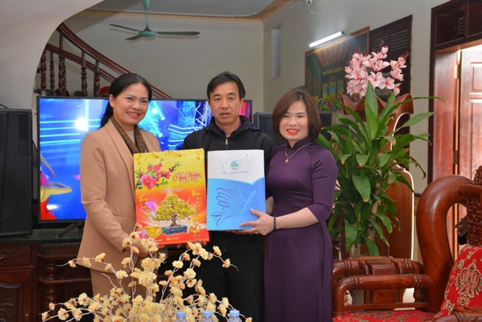 Chủ tịch Hội LHPN Việt Nam Hà Thị Nga đến thăm và tặng quà gia đình chị Đinh Thị Lự - hội viên giáo dân tiêu biểu